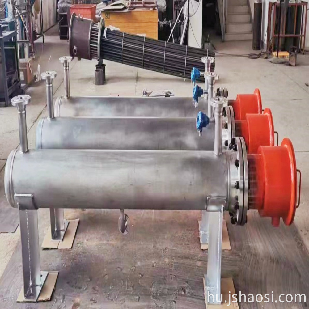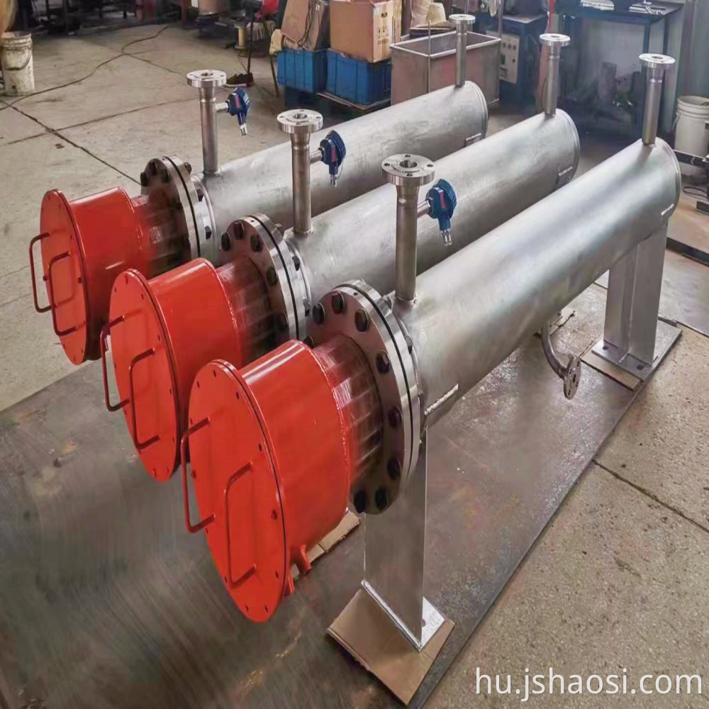 A robbanásbiztos elektromos fűtőt (folyadéktípus) a közvetlen fűtéshez és az áramlási tápközeg melegítéséhez használják. Az alacsony hőmérsékletű folyadékközeg átfolyik a csővezetéken, és a nyomás alatt belép a bemeneti nyílásba.