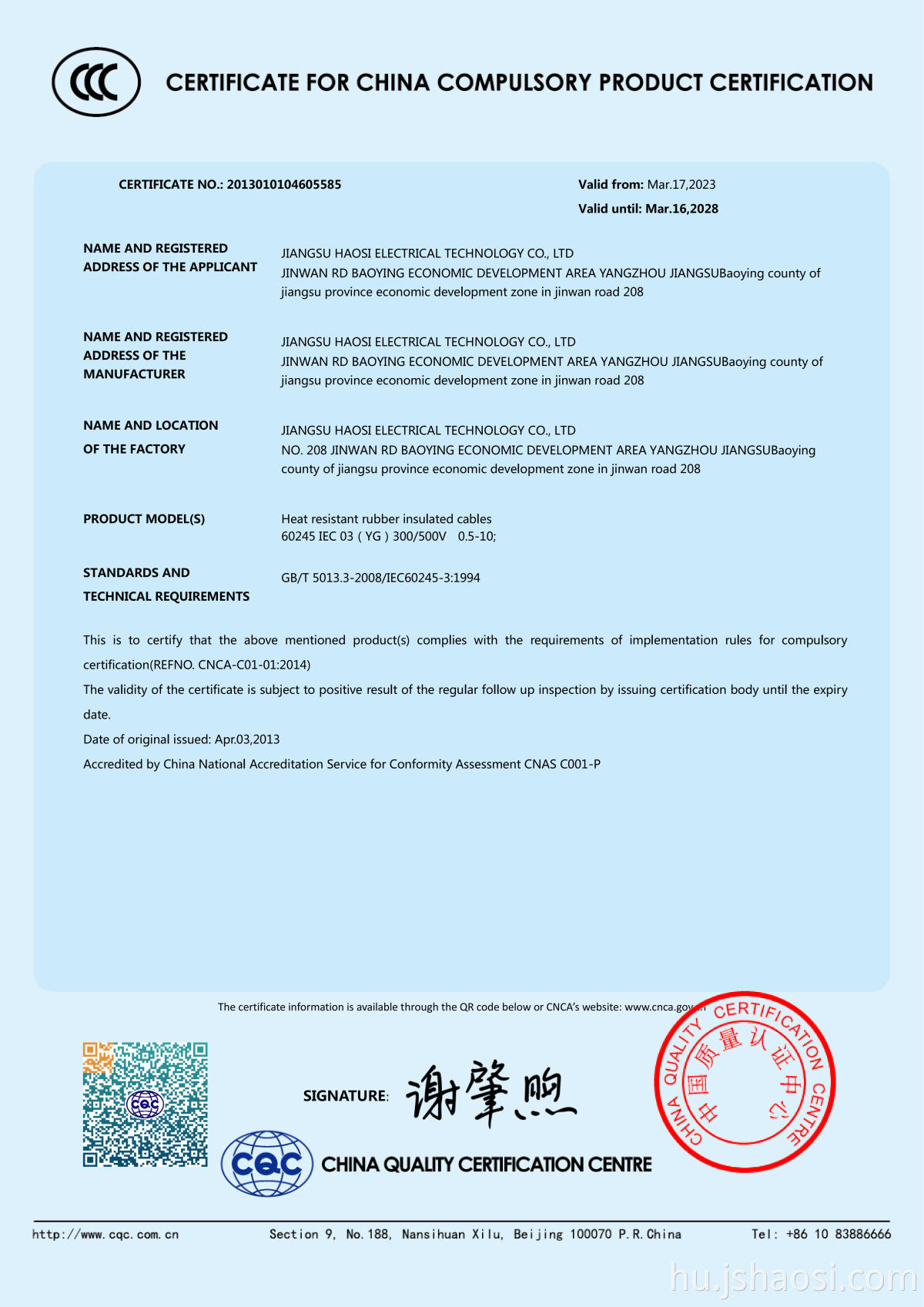 Tanúsítvány: UL,CCC,CE,ISO9001:2015